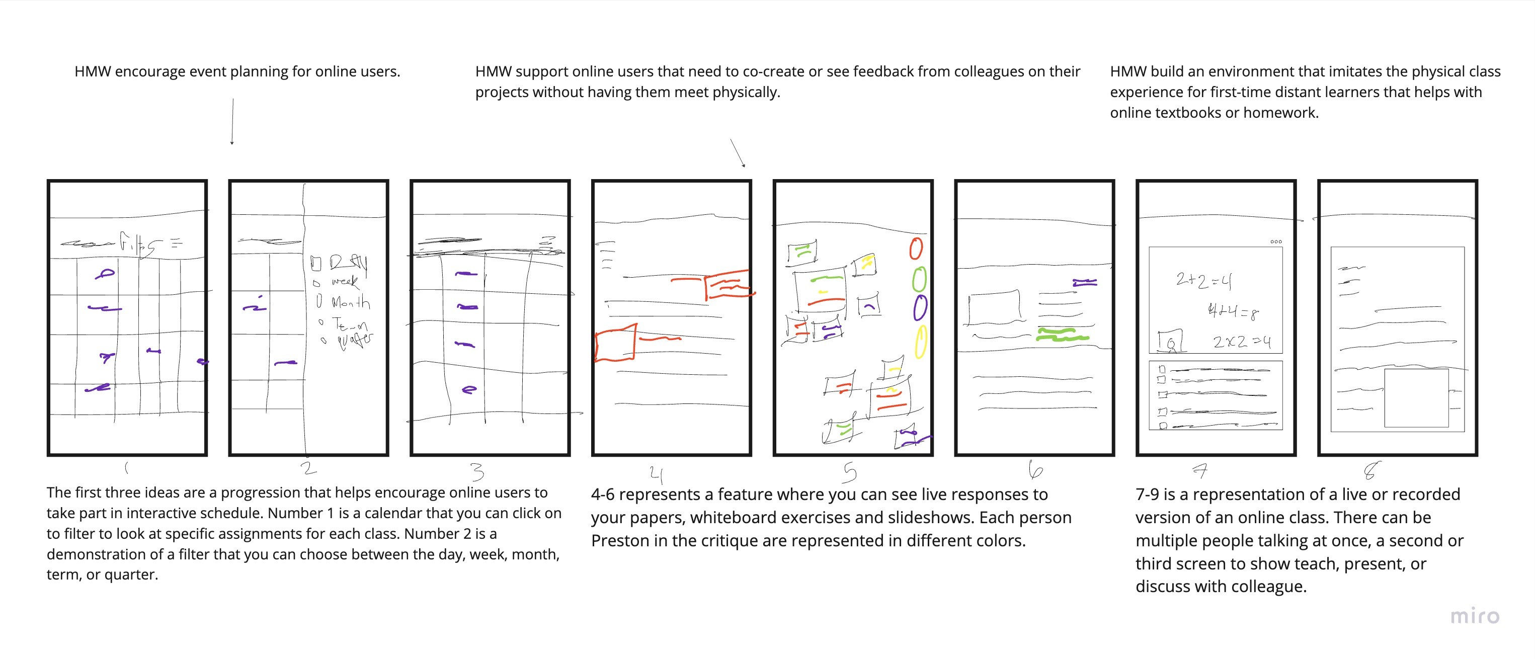 The design activity focused on understanding the motivation behind its completion and evaluating its impact on the design process. To achieve this, I utilized the previously generated HMW statements during a brainstorming session. These statements served as a foundation for creating idea sketches that explored potential features for the app. By visually representing these features, I was able to compare them to the findings from user research, gaining valuable insights.