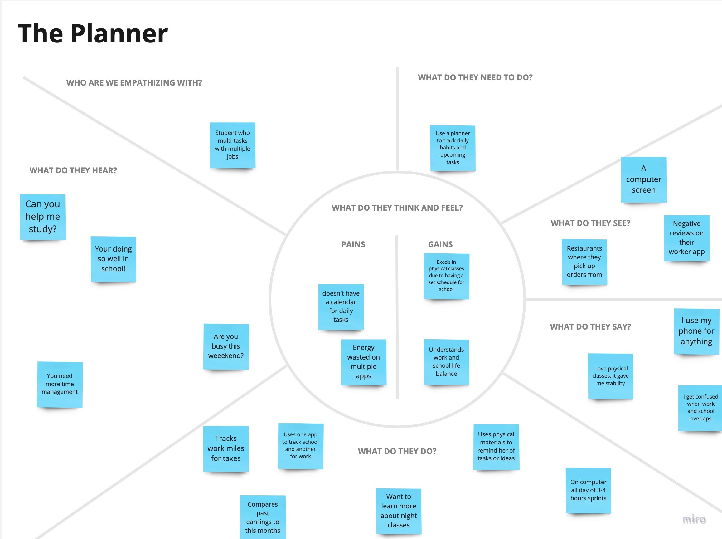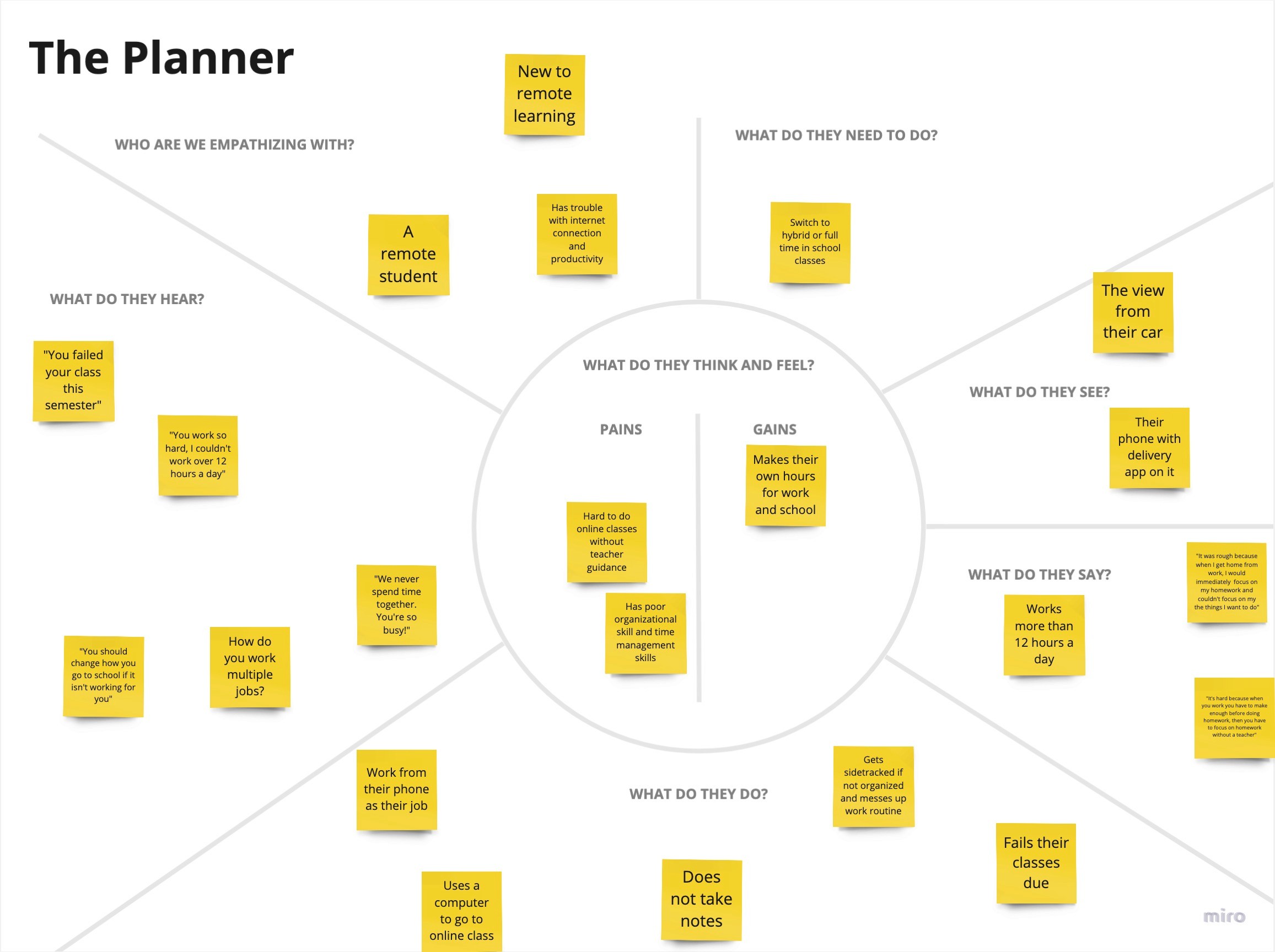 To uncover potential functionalities for my productivity app catering to remote/hybrid students and professionals, I utilized user stories. Through careful analysis of these stories, my objective was to optimize user productivity and improve their workflow. This systematic approach allowed me to identify and prioritize the essential features that should be incorporated into the app's design.